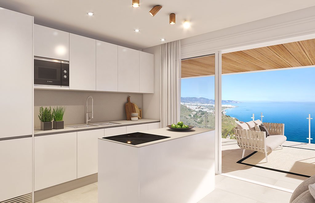 Complexe résidentiel exclusif d'appartements en bord de mer sur la côte de Nerja, Malaga. Le complexe est situé entre Torrox Costa et Nerja, ce qui lui permet d'accéder à tous les services et commodités que ces deux villes importantes de Malaga ont à offrir. Cette région d'Andalousie est connue pour ses magnifiques paysages naturels, ainsi que pour ses villages blancs typiques. C'est une région idéale pour les amateurs de sports de plein air, avec un large éventail d'activités proposées, telles que de nombreux sentiers de randonnée, plusieurs terrains de golf et des ports de plaisance. D'autre part, la ville de Nerja offre, outre de belles plages, plusieurs attractions touristiques telles que la grotte de Nerja, déclarée site d'intérêt culturel, et le célèbre point de vue "Balcon de Europa". Les autoroutes A7 et N340 relient facilement la résidence à d'autres destinations touristiques de la Costa del Sol, permettant d'atteindre par exemple Malaga et son aéroport en 50 minutes ou la belle ville de Grenade en un peu plus d'une heure.Le projet propose des logements de 2 et 3 chambres à coucher avec 2 salles de bains, disponibles dans différents modèles : rez-de-chaussée et étages intermédiaires avec de grandes terrasses et derniers étages avec solarium privé. Tous les modèles disposent d'un espace jour ouvert avec de grandes fenêtres donnant accès à la terrasse et offrent des vues sur la mer, particulièrement spectaculaires aux étages supérieurs. La chambre principale dispose d'une salle de bains en-suite et d'un accès à la terrasse.Les appartements offrent des finitions de qualité supérieure, notamment une cuisine entièrement équipée avec des électroménagers intégrés, un système de climatisation, un vidéophone, un système domotique et un système d'intrusion avec alarme, détection de fumée et de fuites d'eau. En outre, chaque propriété dispose d'un local de rangement et d'une place de garage avec pré-installation d'une borne de recharge pour véhicule électrique. Moyennant un supplément, il est possible d'acquérir d'autres équipements tels que le chauffage par le sol, une cuisine d'été, un jacuzzi pour 4 ou 6 personnes sur les terrasses et le solarium ou une piscine privée au rez-de-chaussée et au solarium.Le complexe est entièrement clos et offre de superbes installations communes : 2 piscines avec jacuzzi, une intérieure chauffée et une extérieure, de grands espaces de jardin, un sauna finlandais, un bain turc, une salle sociale avec salle de jeux, une vinothèque, une salle de cinéma, une buanderie commune, un parking à vélos et un belvédère avec de belles vues sur la mer et une zone de barbecue. Pour garder la forme, vous trouverez un gymnase, un terrain de paddle et multisports, un putting green et un simulateur de golf.Des appartements fantastiques au cœur de la Costa del Sol, parfaits pour profiter du mode de vie méditerranéen à l'état pur.