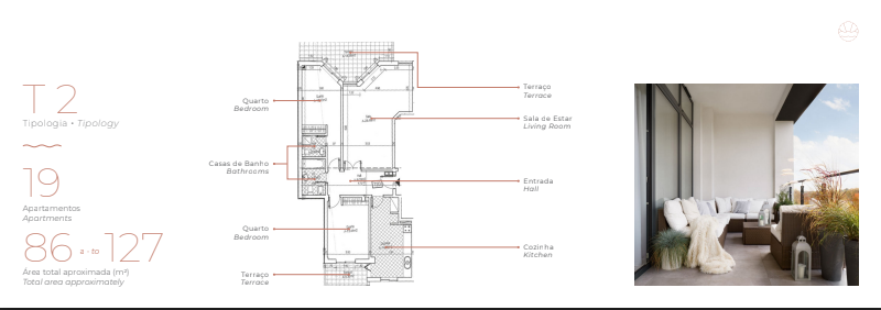 T1, T2, T3 et T4 avec des surfaces généreuses et de grands balcons, certains offrant une vue imprenable sur la Ria Formosa. Chaque appartement dispose d’un grand salon, avec une cuisine intégrée et équipée, d’installations sanitaires, dont certaines en suite, et de chambres avec placards. Les appartements disposent de places de stationnement et de caves réparties au niveau du sous-sol.